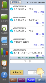 2)リスト送信/書き出し、在庫更新画面。。。リストの選択と削除