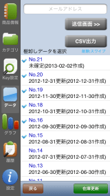 “リスト”ボタンタップして、保存されている棚卸しリスト一覧を表示