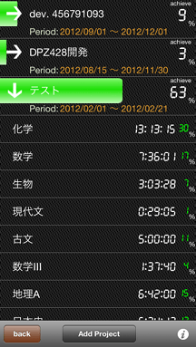 ★プロジェクト単位で目標時間、日程を設定し、達成率を表示